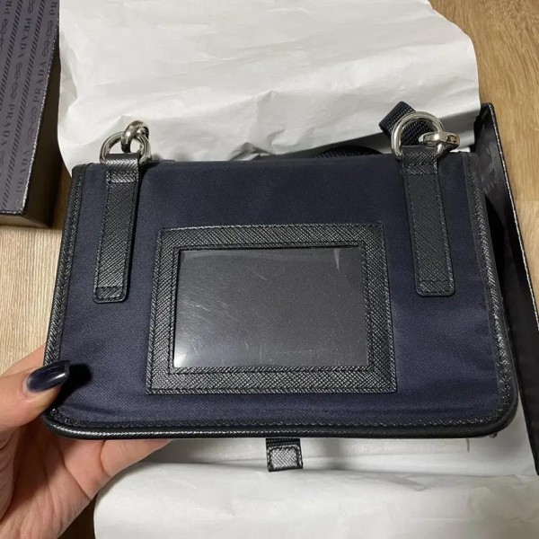 프라다 리나일론 및 사피아노 가죽 휴대폰 케이스입니다